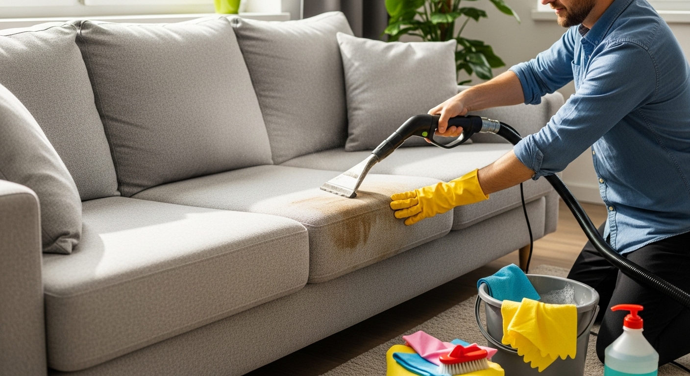 (Spot-Test Steps + Stain Removal Do/Don’t List) A fabric couch can look clean… until sunlight hits it and you see…